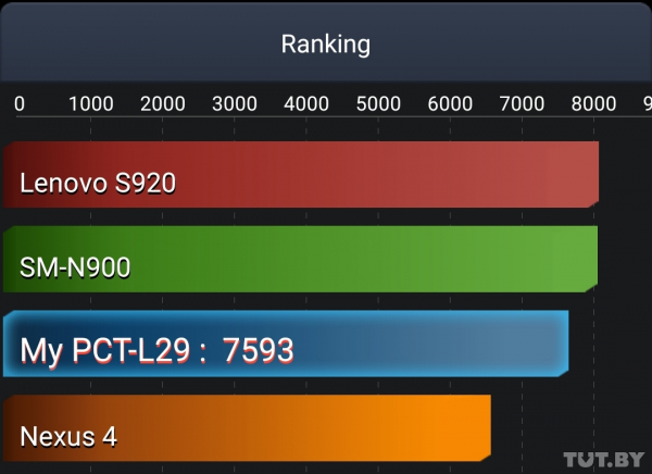 В синтетическом тесте AnTuTu Tester смартфон набрал 7,5 тысяч баллов — не самый лучший результат, особенно с учетом увеличенного объема аккумулятора. Возможно, это можно списать на еще не до конца оптимизированную прошивку — с выходом обновлений ситуация, скорее всего, станет лучше.