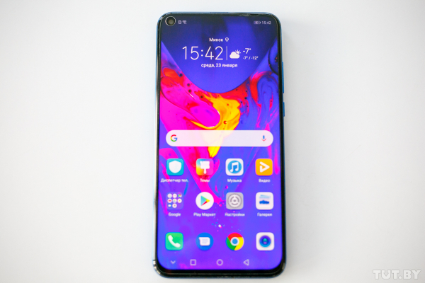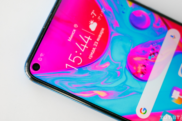 Самая главная особенность смартфона — дисплей, в верхней левой части которого есть «дырка» под фронтальную камеру. Интересно, что именно Honor первым анонсировал устройство с такой особенностью — бренду удалось на несколько часов опередить компанию Samsung.
