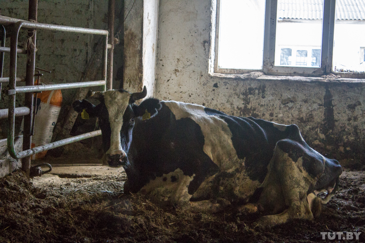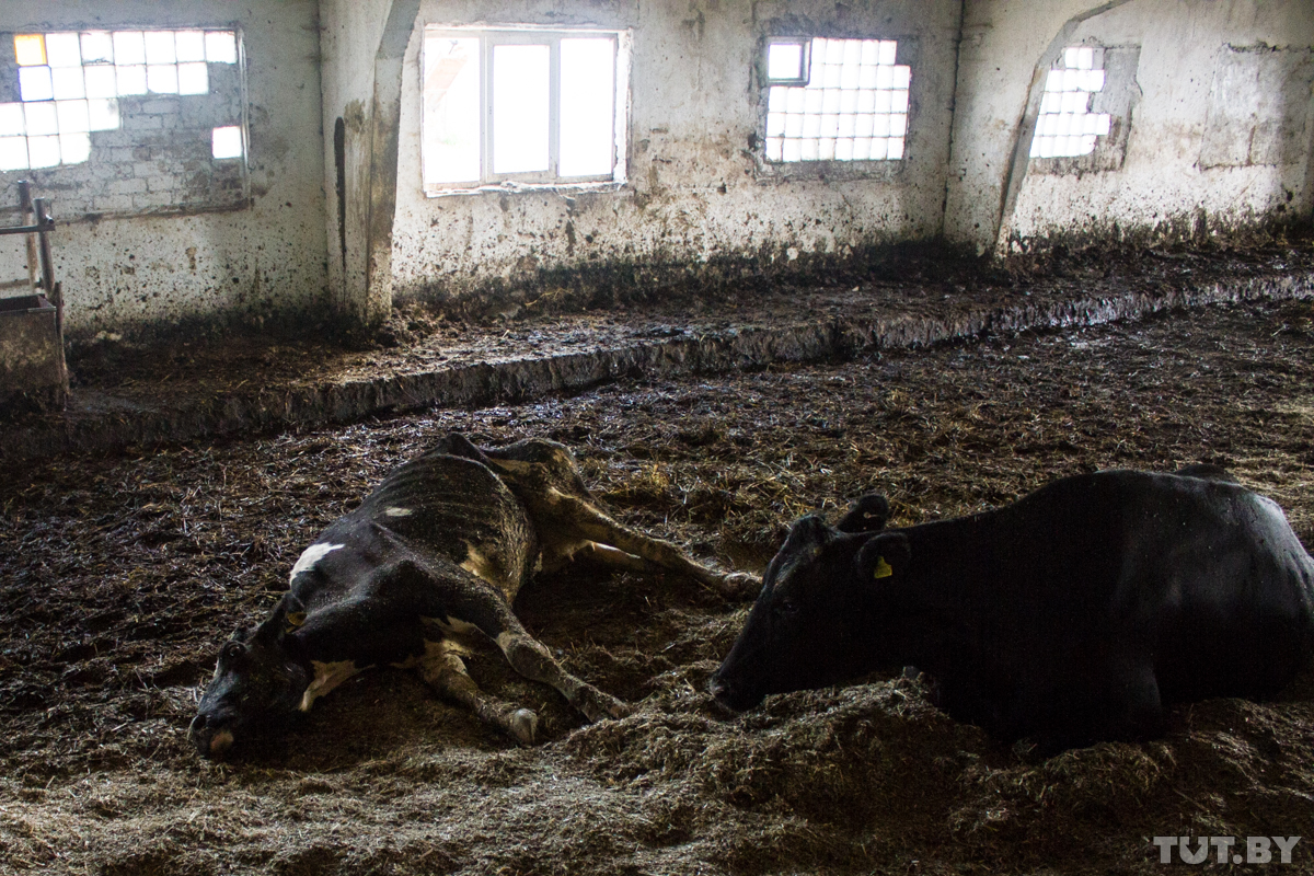 На молочно-товарном комплексе в Паршино все, мягко говоря, по-другому. Во-первых, сюда вряд ли возят на обучение студентов и тем более высоких гостей (хотя последним стоило бы заглянуть самим). Во-вторых, никакими роботами и туфлями на шпильке тут даже не пахнет. Тут до рези в глазах пахнет коровьими экскрементами, гнилым кормом. А еще безнадёгой, которая читается в глазах работников и лежащих в жиже и не могущих встать не буренок — скелетов, которые пока еще дышат, но уже не мычат, только редко постанывают.