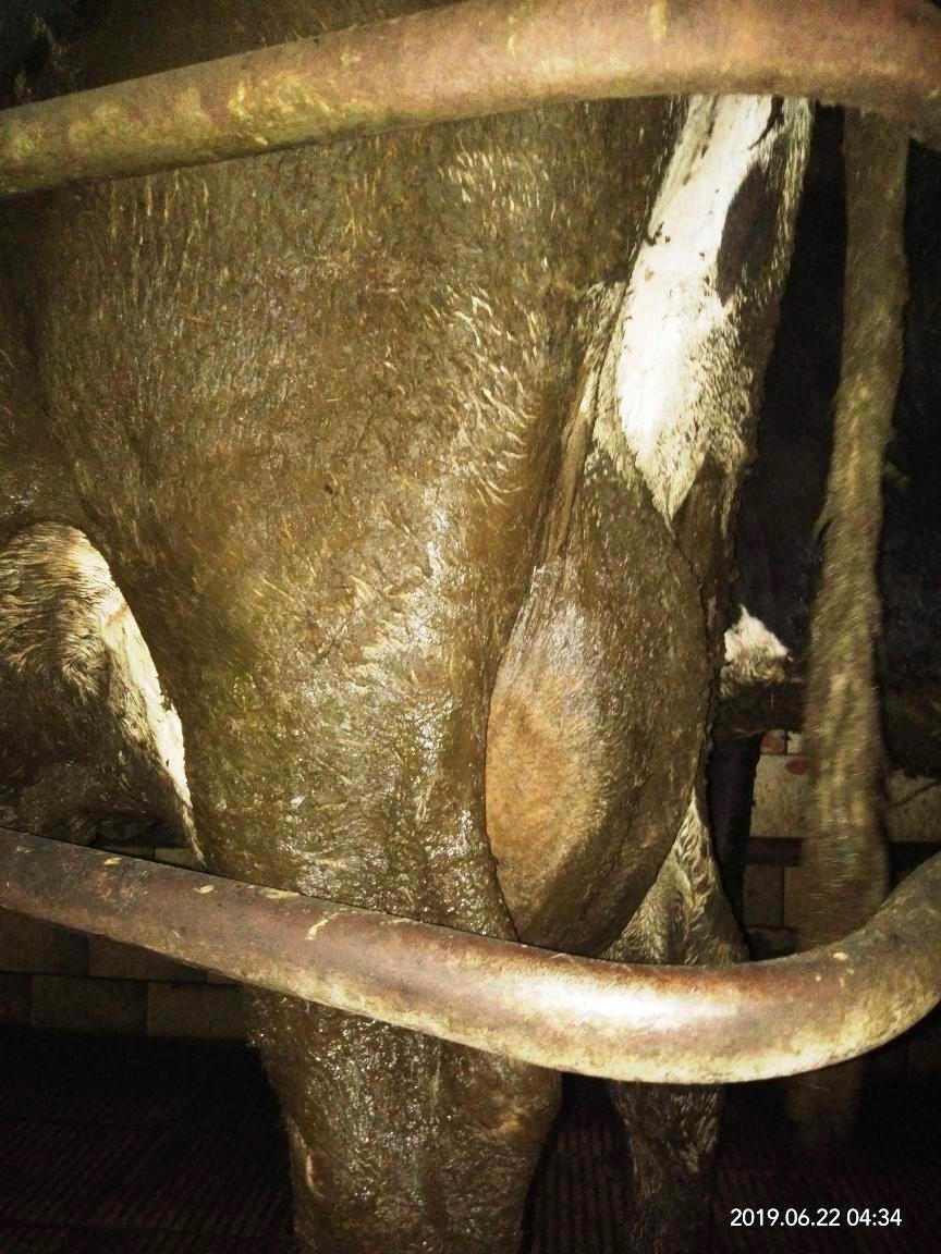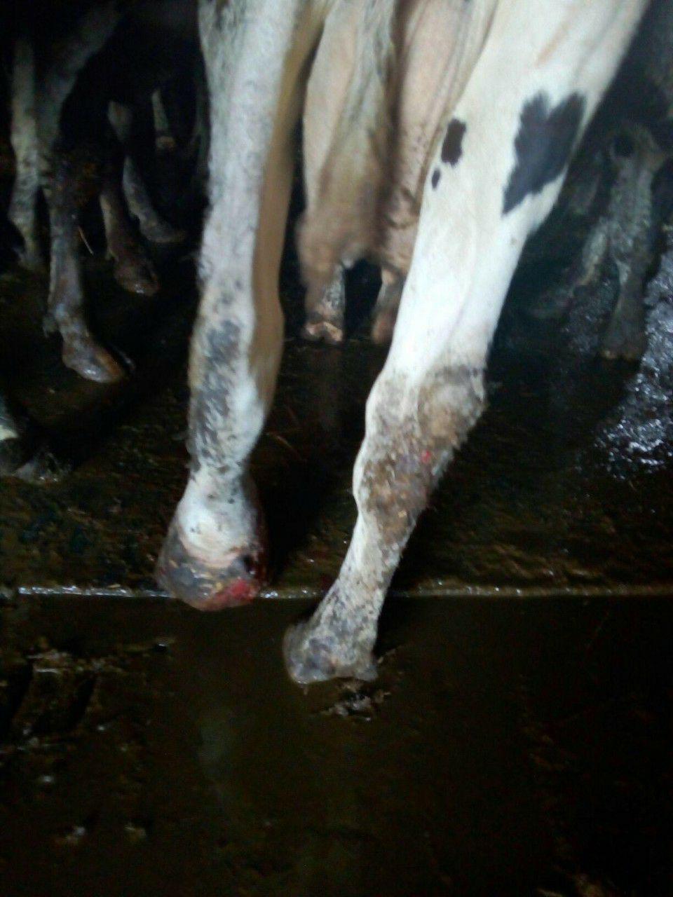 Также на снимках видны гниль и серьезные травмы копыт у коров. И причина этого тоже видна на фото: животные стоят и лежат в навозной жиже, подстилки в сарае нет.