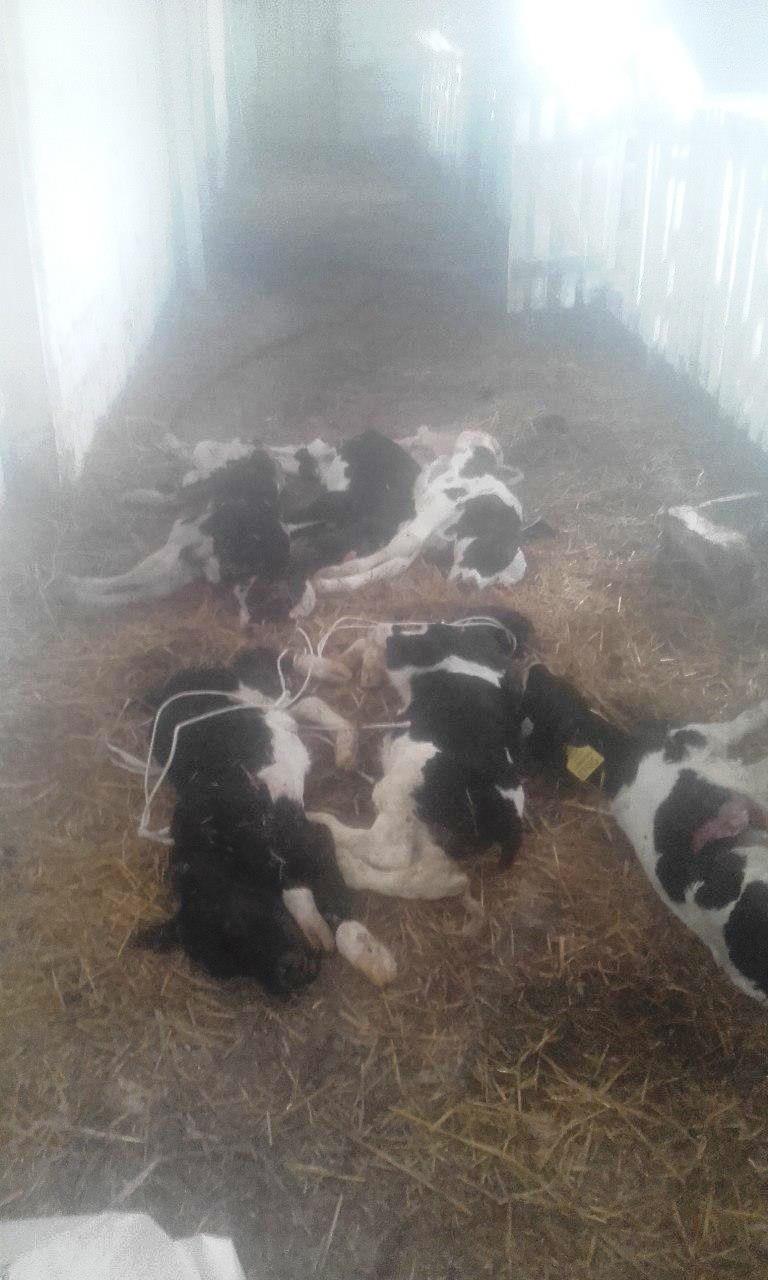 «Это старое родильное отделение, раздой первотелок и телятник. Но вместо живых телят, как видите, складируют мертвых, и так они лежат неделями. Прогнившие вымена на фото — живых дойных коров, молоко от которых отдается на выпойку телятам», — так прокомментировали снимки работники комплекса.