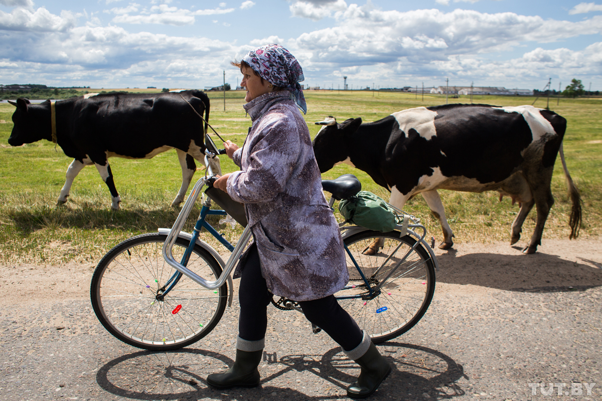 — Смотрите, как получается. В СПК говорят — кто сдал теленка, тому сено дадут. Но непонятно сколько — лугов-то осталось мало. Где они косить будут? — говорят местные жители и показывают луга, на которых им предлагают «пасвіць» коров. — Здесь болото всегда было. Трава растет, но она мелкая и жесткая. Никогда местные сюда коров не выгоняли. Сенокос был во-о-о-н до того знака, — показывает рукой местный житель Юрий Бабаев на поля, где сейчас растет ячмень и свекла. — Получалось так — на одном поле — коровы, второе — скосили, коров перегнали. А сейчас что? Вот этот болотистый луг и вот этот кусочек земли около самой деревни. Все. Корма здесь максимум на неделю перетоптаться. А что дальше? На асфальте стоять?
