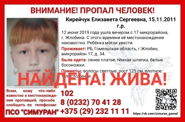 «Заявление о пропаже Елизаветы поступило в Жлобинский РОВД 12 июня в начале одиннадцатого вечера. По тревоге подняли личный состав районного отдела милиции. Сначала прочесывали город. Инспекторы ИДН искали и опрашивали всех возможных очевидцев, оперативники уголовного розыска отрабатывали версии исчезновения», — рассказывают в УВД.