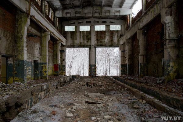 Внутри этих огромных ангаров раньше обслуживалось самое грозное оружие СССР. Раньше они были отапливаемые, проемы закрывали огромные металлические двери. Именно в эти боксы заходили семиосные МАЗ-547 — 106-тонные махины для проведения регламентных работ. Все кабели, которые шли к специальному оборудованию для тестирования ядерных боевых частей (оно было расположено в соседнем здании), проходили под землей, по выложенному кирпичами желобу.