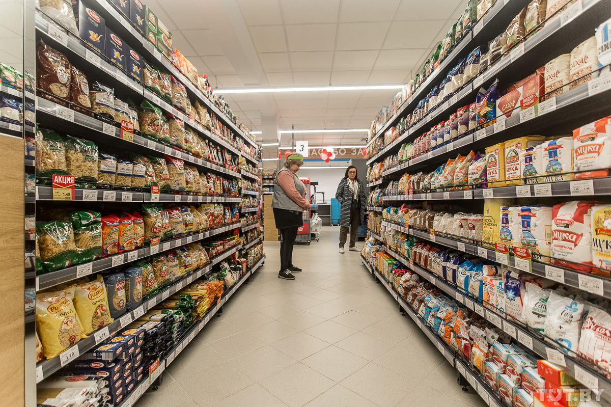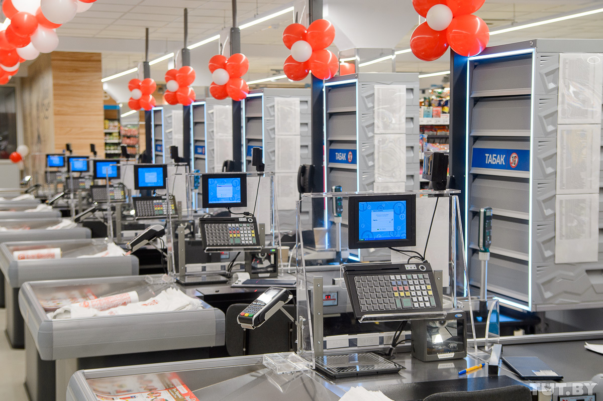 В магазине остались два выхода, один из них украшен литографией старого Минска и историей города. Подвальные окна перекрыты такими же историческими картинами. Зал не расширяли, но сделали пространство более комфортным за счет широких проходов между витринами. В магазине работают шесть касс. На ремонт потратили месяц.