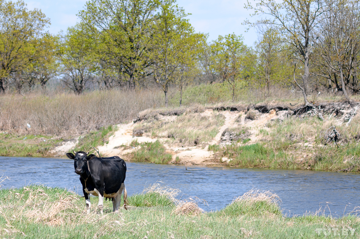 Начало мая, окраина Мозыря, поселок Пхов. Людмила Прокофьевна ведет свою буренку по сухому лугу. Еще несколько лет назад такое трудно было даже вообразить, ведь каждую весну эти места, словно огромные блюда, наполнялись водами Припяти до краев, а рыбу местные ловили прямо с крыльца. И так до самого июня. Бывали и менее приятные моменты, когда вода заходила полновластной хозяйкой во дворы, жилища и сараи. Во время сильных паводков местным даже приходилось съезжать из своих домов, а скот, чтобы прокормить, вывозили на острова. Благо такое случалось не чаще чем раз в десять лет. Зато какие были урожаи! Большая вода уходила, оставляя после себя главное богатство для огородников — сапропель, незаменимое природное удобрение из водорослей и живых водных организмов. Но теперь все это в прошлом.