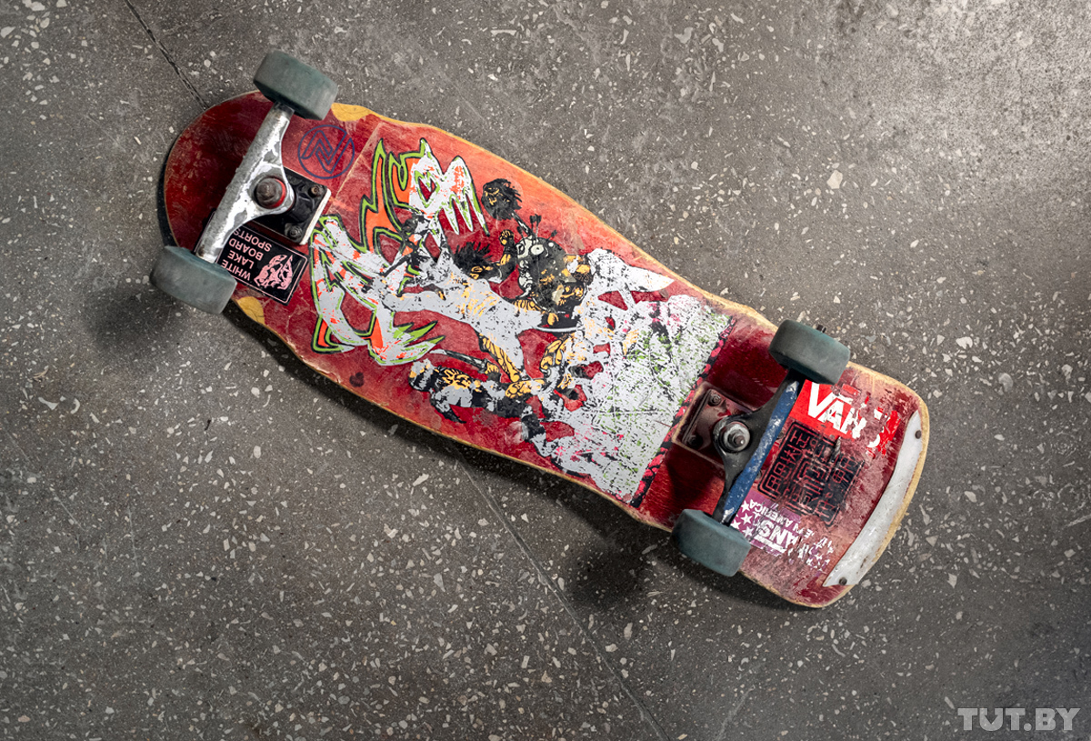 — Самая первая моя «доска» канула в Лету, она осталась на Кавказе, где я начинал кататься. Когда я летом 1988-го приехал в Минск, здесь у моего друга был скейт — он сейчас тоже висит в музее. На той «фанерке» мы катали, потом друг потерял интерес, и она перешла ко мне.
