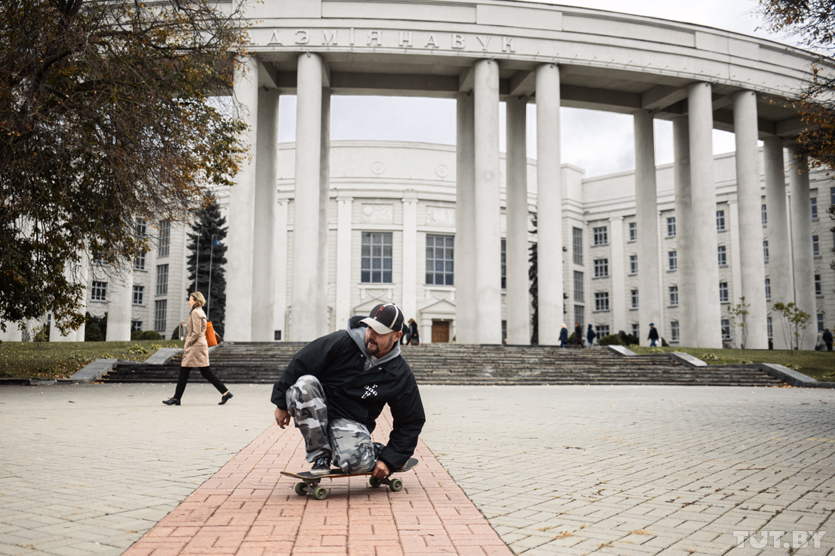 Я в первые же выходные в кедиках — на Академку. А там чудо — катает человек 20, мне показалось это огромной толпой. Там были люди и постарше меня, и помладше. И пошло-поехало. На это место со скейтами приезжали даже ребята из Чижовки — это вообще было для нас другой стороной земли. Бывало, на Академке собиралось за сотню человек!