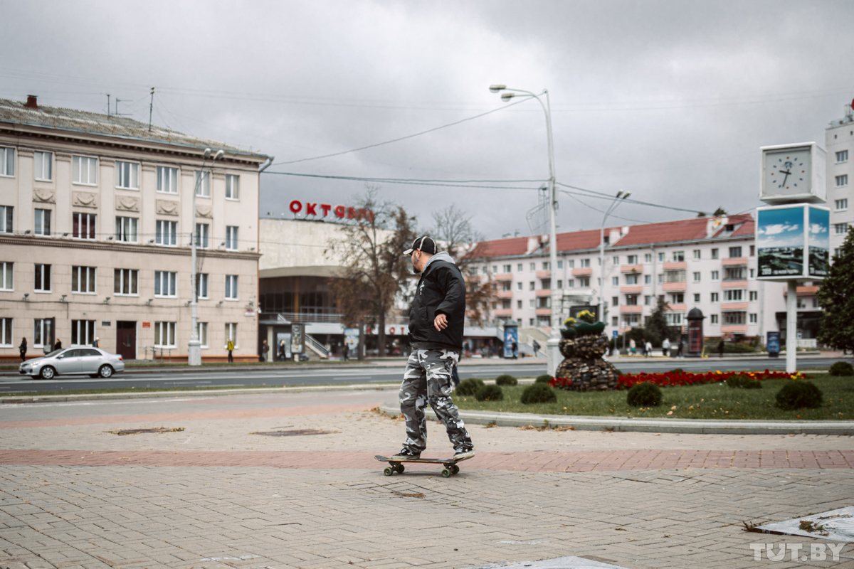 Сначала я был скейтером-одиночкой. Жил на Западе-3, рядом с универсамом «Гродно». Спальный район, полчаса езды до вокзала — катался по тропе здоровья на Сердича возле школы и в районе. Помню, пошел смотреть то самое кино. Смотрю: к кинотеатру «Мир» пришла с «досками» толпа пацанов — ничего себе! Познакомился. Они катали на Академии наук по выходным.