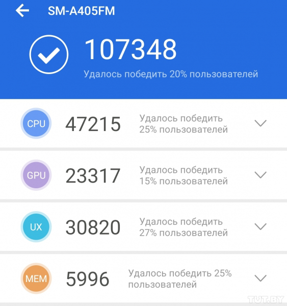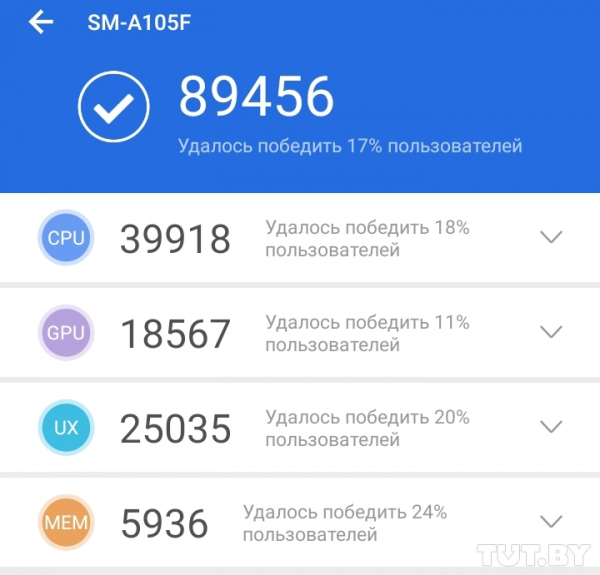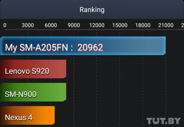 У Galaxy A20 результат еще более впечатляющий — больше 20 тысяч очков в AnTuTu Tester. То есть на одном заряде смартфоном получится пользоваться около двух (а может быть, и двух с половиной) дней.