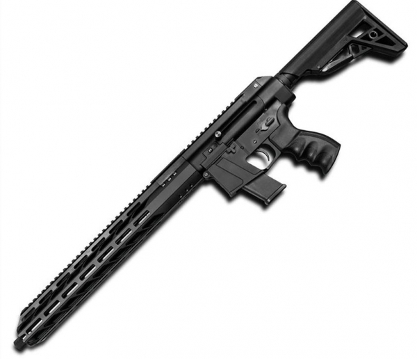Еще одна новинка в калибре .45 ACP, главные преимущества которой — надежность, точность и прочность. AlphaWolf Pistol построен на базе винтовки AR-15, но, в отличие от оригинала Юджина Стонера, снабжен поворотным затвором, газовым поршнем с коротким ходом и боковой ручкой перезарядки. Оружие снабжается прикладом с регулируемой щекой и буферной трубкой MIL-SPEC.