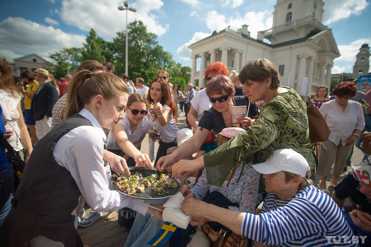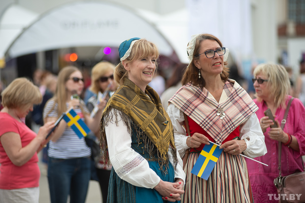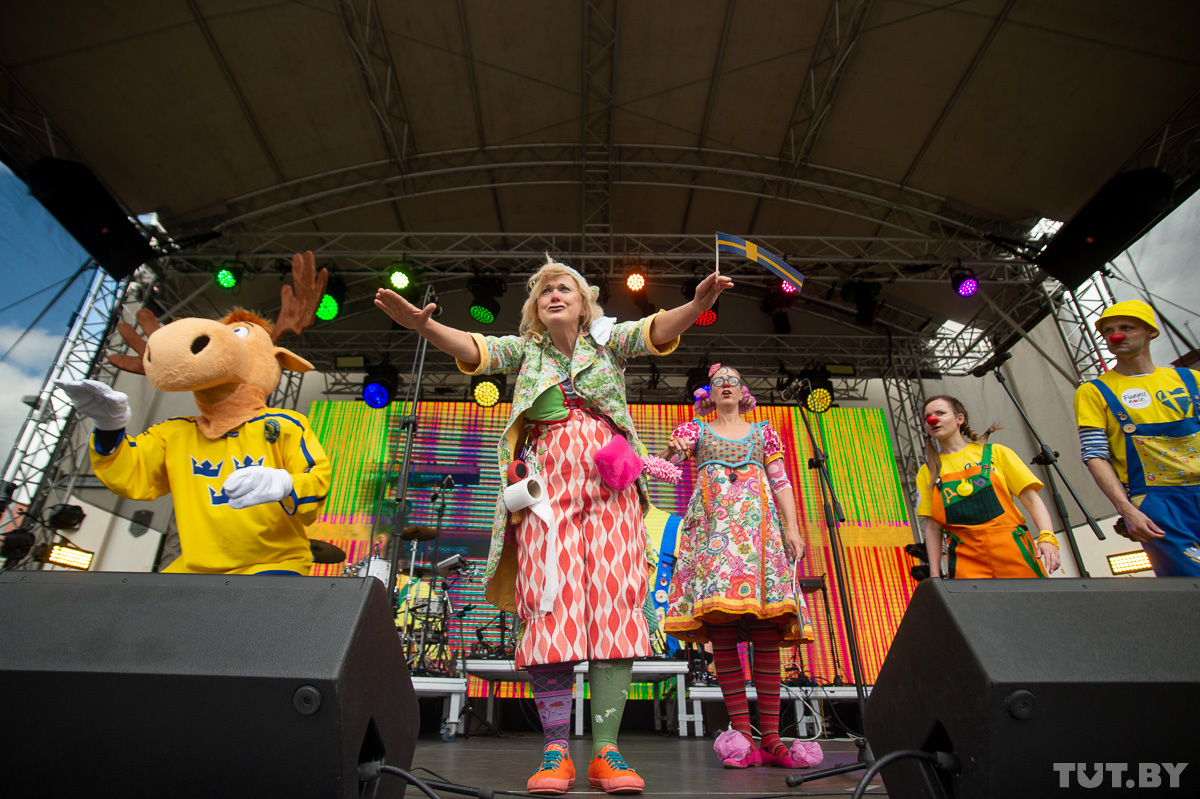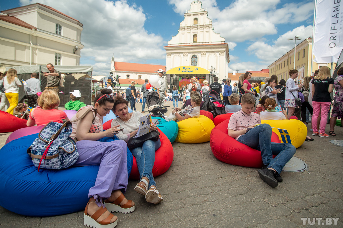 Днем на главной сцене выступали шведский и белорусский хоры, проводили интерактивные викторины, со сцены о своей работе над проектом «Шведские хроники» рассказали журналисты TUT.BY.