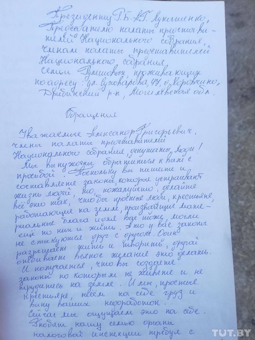 «Не можем исполнять гражданские обязанности», — с такой формулировкой семья Гулешовых из Дрибинского района отправила уведомление президенту Беларуси. Пишет, что отказывается от паспортов и гражданства, хочет, мол, просто жить, работать на земле и никому не мешать. Журналистам поясняют, что к этому привел в числе прочего конфликт с налоговой. Гулешовы цитируют Библию и Дарвина, Александра Лукашенко и Владимира Маяковского, Сергея Есенина, Сократа и Конституцию. Чтобы объяснить: их позиция и поступки в конечном счете — не блажь, а беспокойство за будущее планеты и человечества. TUT.BY попытался выяснить, в чем же дело.