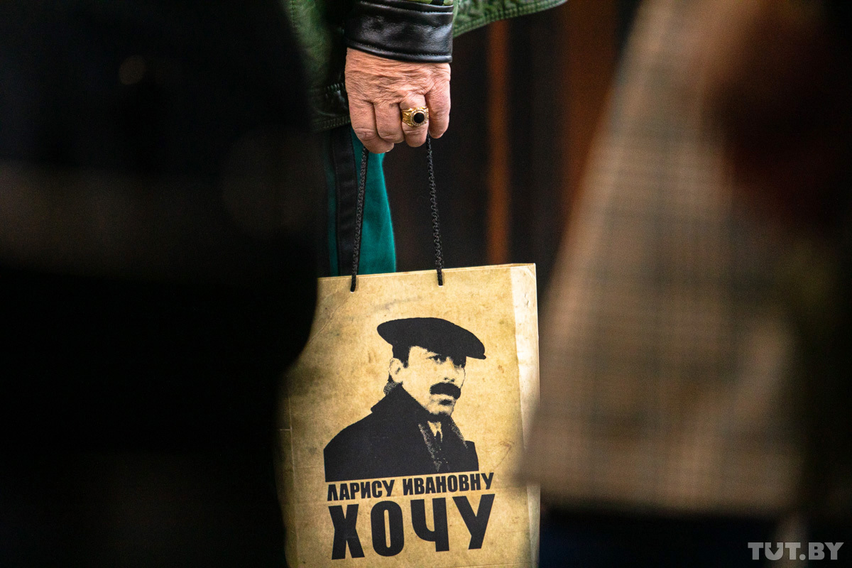 — А где Лариса Ивановна? — спрашивают в толпе, когда со скульптуры снимают ткань и люди видят только фигуру «Мимино».