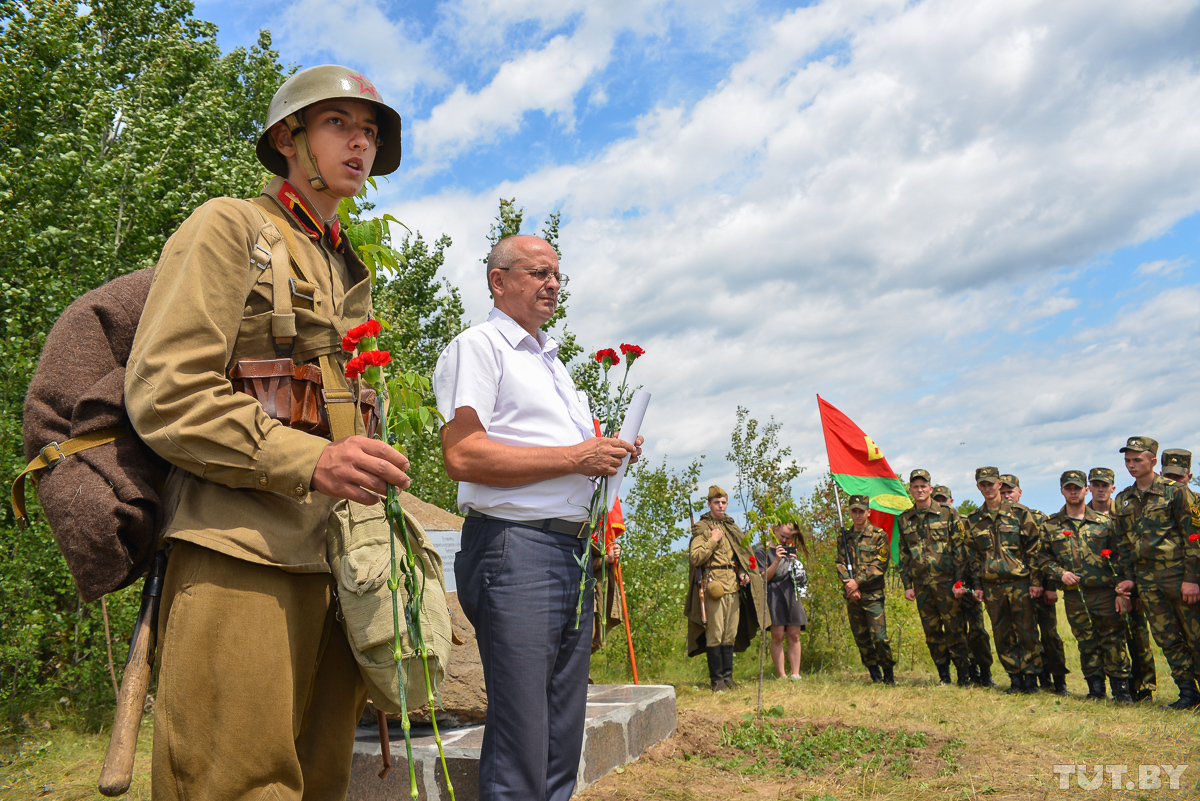 Его открытие было торжественным, но малолюдным. Собрались лишь те, кто на протяжении многих лет пытался сохранить память о погибших мальчишках. Среди них — учитель математики бобруйской школы № 25 Валерия Ткачук, которая со своими учениками несколько лет ухаживала за могилой курсантов, попутно собирая сведения о событиях июня 1941 года. Женщина до сих пор надеется, что откликнутся те, кто знает хоть что-то о боях на левом берегу Березины. Пока же судьба случайно свела ее с Ниной Прокофьевной Киселевой, племянницей курсанта Бобруйского военно-тракторного училища Павла Карманного. 28 июня 1941 года на берегу Березины он, по словам женщины, принял свой первый бой.