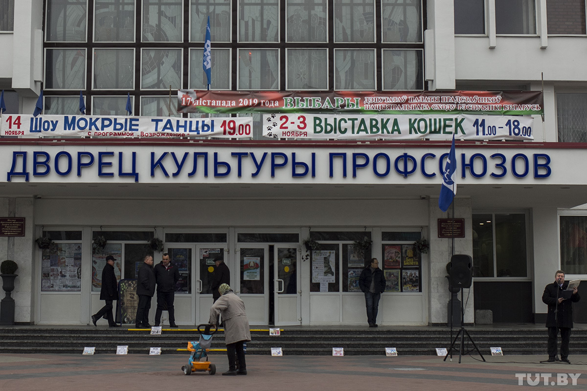 Прелюдией к встрече 2 ноября стал митинг, который провел перед ДК профсоюзов гражданский активист Виталий Казак — доверенное лицо четырех кандидатов в депутаты. Именно он на прошлом «большом разговоре» с мэром просил вернуть на место венок.