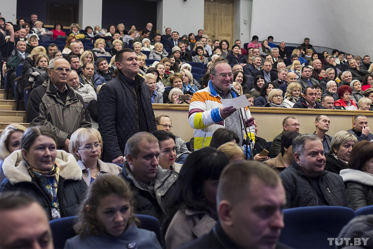 После аккумуляторных вопросов к микрофону подошла брестчанка Антонина, которая поинтересовалась, не планируется ли в ближайшее время создать еще один административный район — а то, мол, существующие слишком многолюдные.