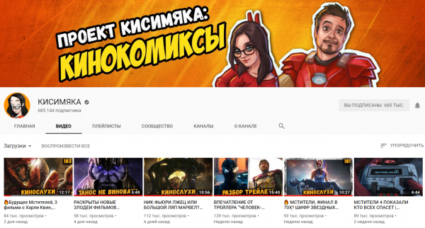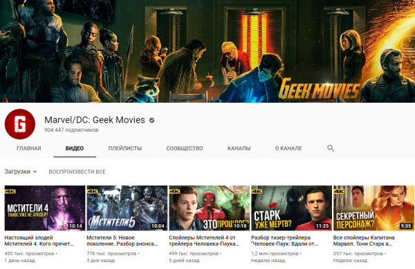 На канале с 904 тысячами подписчиков видео выходят несколько раз в неделю и почти всегда рассказывают только о фильмах Marvel и DC. На момент публикации материала последние несколько роликов на YouTube-канале посвящены разборам трейлера фильма «Человек-паук: Вдали от дома» и «Мстители: Финал».