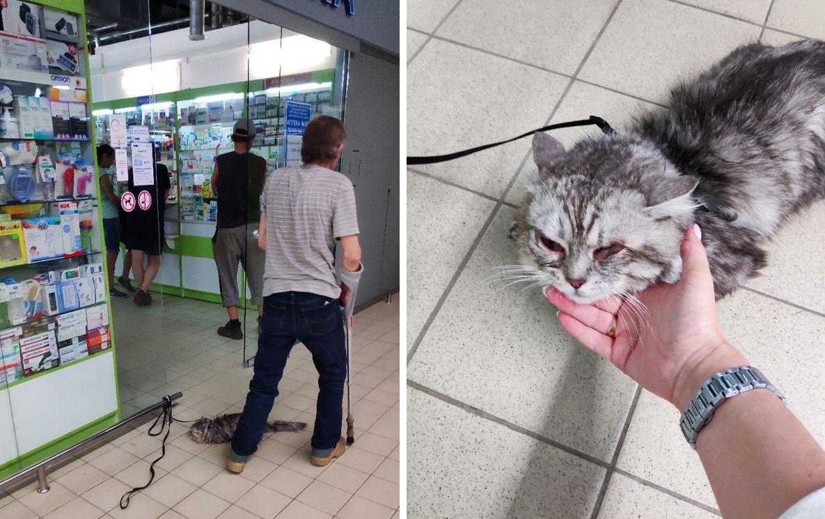 Кот выглядел очень плохо, у него нет одного глаза, а второй под угрозой из-за инфекции. Прохожие рассказали, что мужчина нередко приходит за настойками.