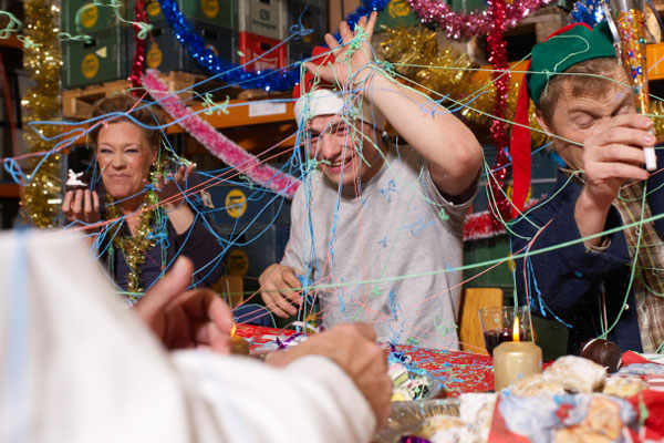 В кадре шестеро полуголых мужчин встали в центре VIP-зала. Они изобразили кегли. Другой участник веселья предстал в образе шара для боулинга. Он пронесся по полу в шлеме и сбил их.