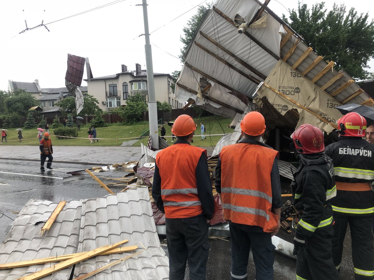 Минск, район Запорожской площади. Часть конструкции частного жилого дома оказалась на проезжей части. Повреждены три автомобиля, пострадавших нет. На эту минуту — самое серьёзное из случившегося. pic.twitter.com/283JwLEmXz