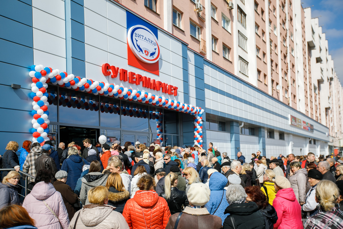 В Минске на улице Маяковского открылся новый «Виталюр». К началу работы у дверей собрались десятки жителей окрестных домов. Они говорят, что магазин здесь — долгожданный.