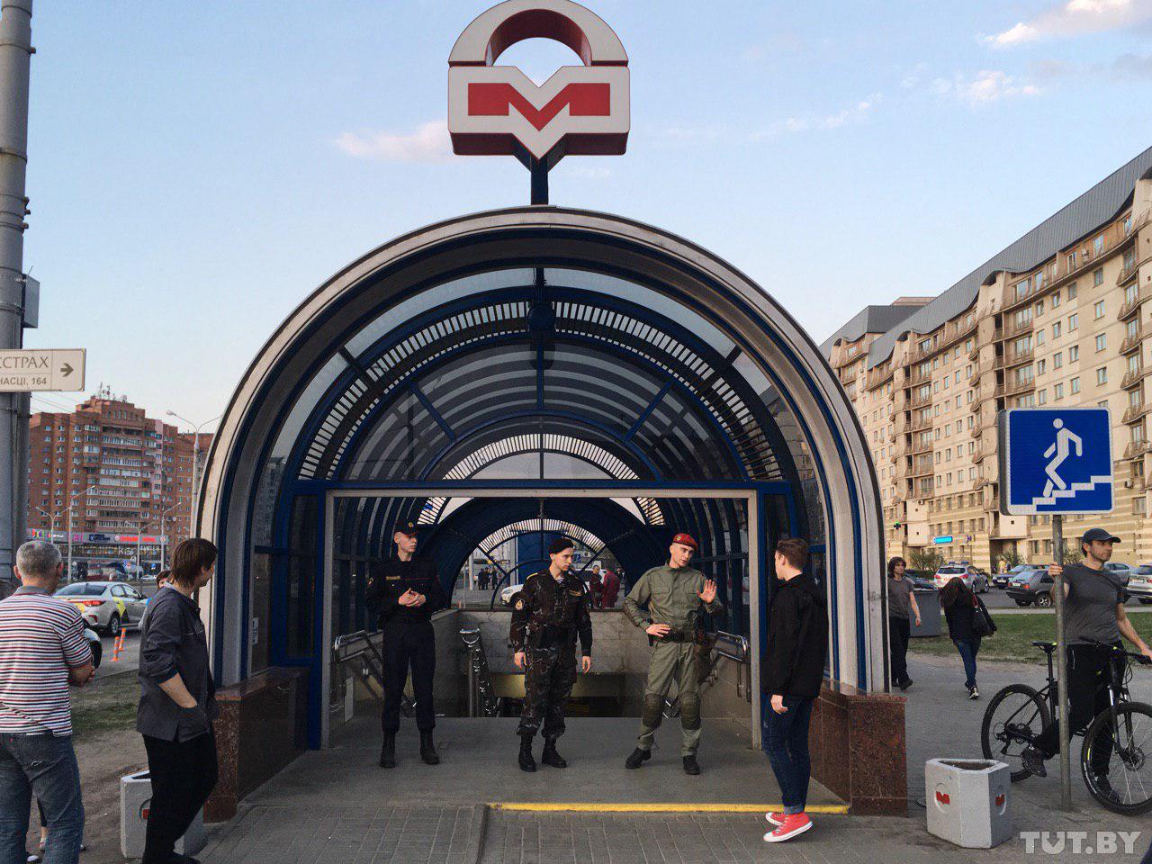 На станцию метро «Уручье» пассажиров также не пускали — дежурили ОМОН, машина скорой помощи и саперно-пиротехнической службы.