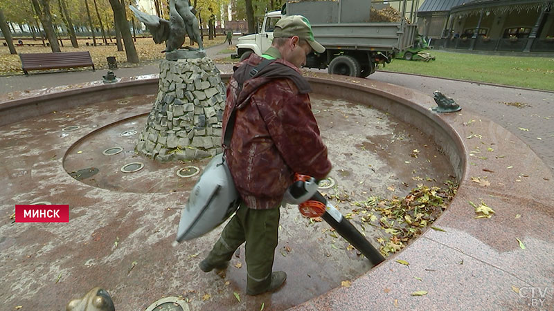 В столице для уборки листвы стали использовать специальную технику, сообщили в программе «Столичные подробности» на телеканале СТВ.
