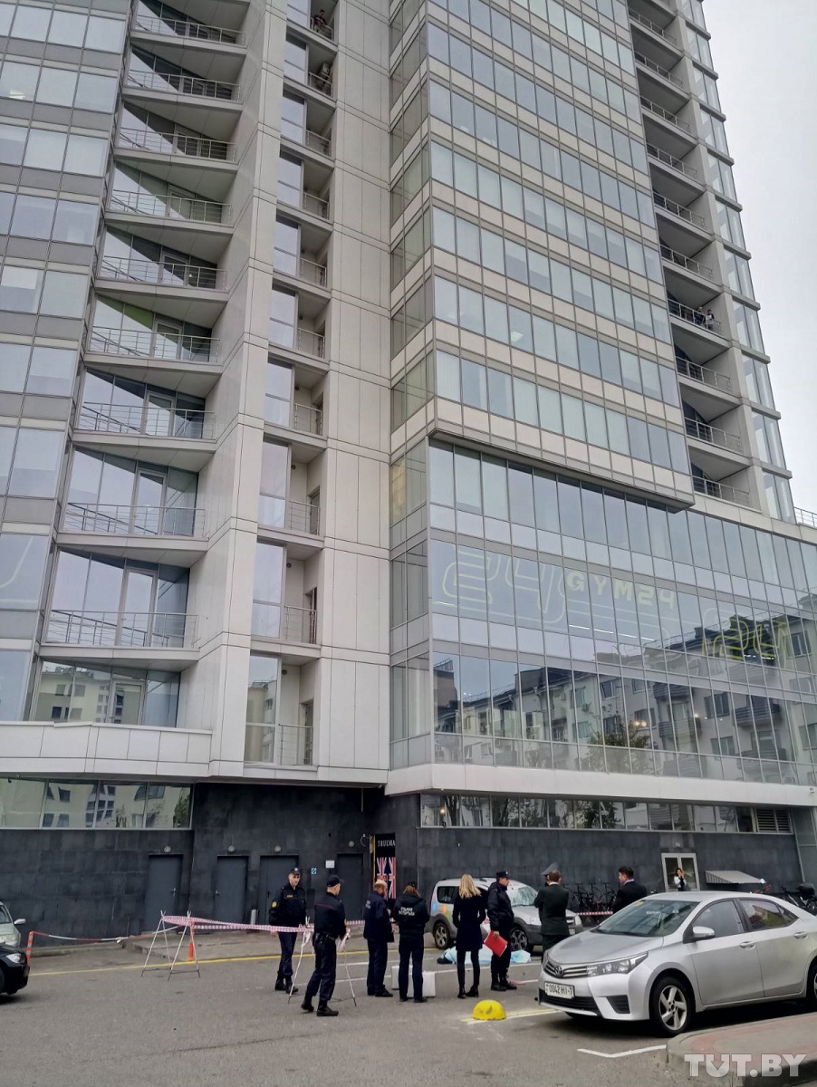 Со здания бизнес-центра «Роял Плаза» в Минске упал человек. Об этом TUT.BY сообщают очевидцы.