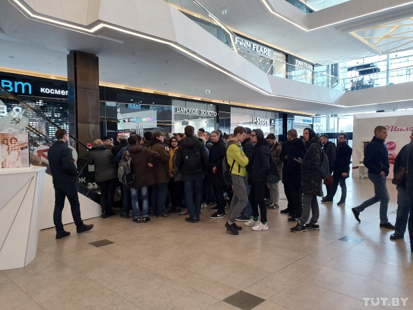 Старт продаж новинки в Galleria Minsk намечен на 12 дня, но очередь возле входа в торговый центр начала образовываться за несколько часов до этого. Уже в 10 утра перед магазином Xiaomi находилось несколько сотен человек, покупатели заняли большую часть четвертого этажа торгового центра.