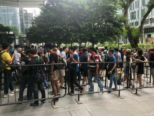 Завтра в странах «первой волны» начнутся продажи новых смартфонов компании Apple — iPhone Xs и iPhone Xs Max. В Сингапуре за день до этого возле одного из фирменных магазинов производителя уже успела выстроиться огромная очередь.