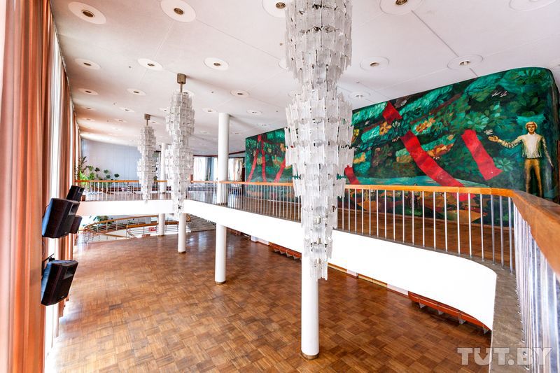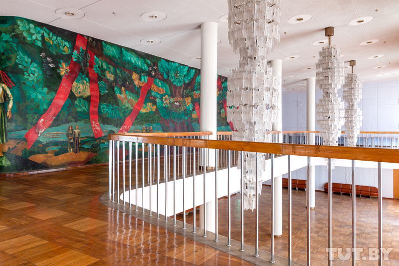 Директор культурно-спортивного центра Минского отделения БелЖД (так теперь называется Дворец железнодорожников) Александр Кулага рассказал TUT.BY, что роспись зашивают гипсокартоном.