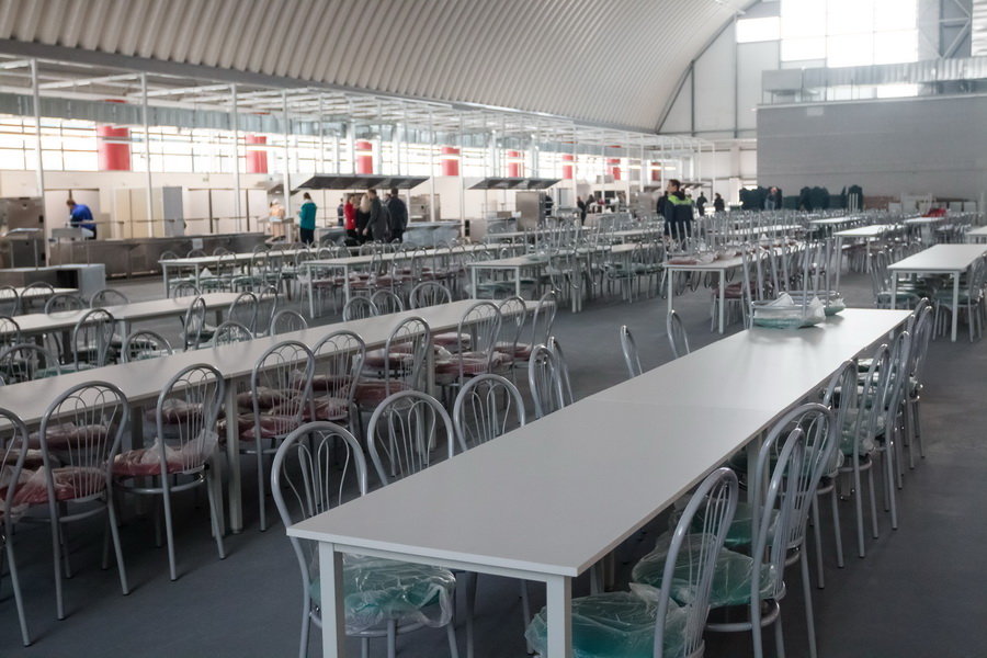 Столовая масштабная: площадь зала — 5,5 тысячи квадратных метров, он рассчитан на 2 тысячи посадочных мест. Сообщалось, что похожие столовые работали на крупнейших международных соревнованиях — на Олимпийских играх в Сочи и Европейских играх в Баку.