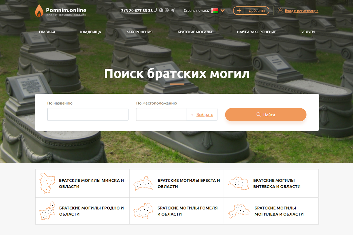 — На протяжении последних двух лет я развиваю онлайн-проект «Помним», где люди могут найти информацию о месте погребения своих близких. Если упрощенно говорить, это бесплатная общедоступная база захоронений. Поиск может осуществляться по фамилии, дате рождения, смерти, либо по названию и расположению кладбища. В наших планах — полная цифровая каталогизация всех кладбищ Беларуси. Это, по нашим подсчетам, около 50 миллионов захоронений. Подобных проектов, если мы говорим о возможностях и доступности, ранее не было ни в Беларуси, ни в других странах. Поэтому мы планируем развиваться также в России и Украине. Далее на очереди — страны Балтии и Польша.