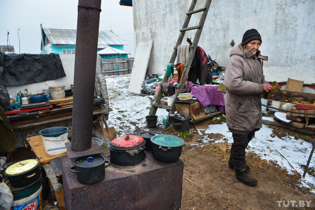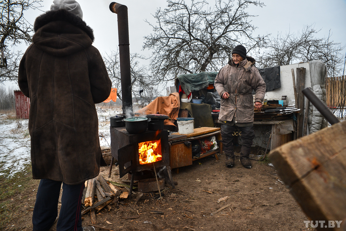 В этом доме без отопления также живут ее мать-пенсионерка, брат и еще одна сестра. Спят, признается женщина, в одежде, еду готовят на улице, используя печку-«буржуйку». Возле нее как раз и хлопочет над обедом мать-пенсионерка. Вместо дров — старая мебель и хлам, который соседи стаскивают на подворье.
