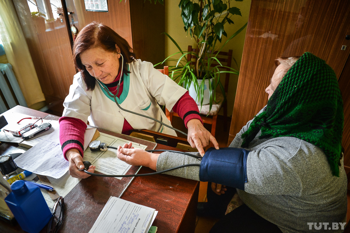 В местном ФАПе, больше похожем на клуб для пенсионеров, в будний день многолюдно. Кто-то приходит измерить давление, кто-то — погреться и пообщаться с односельчанами. Фельдшер Тамара Лицкевич работает здесь уже 52 года, поэтому знает о жителях Стасевки все. Имен не называет, так как не имеет права разглашать медицинскую тайну, но рассказывает, откуда в деревне появился вирус иммунодефицита.