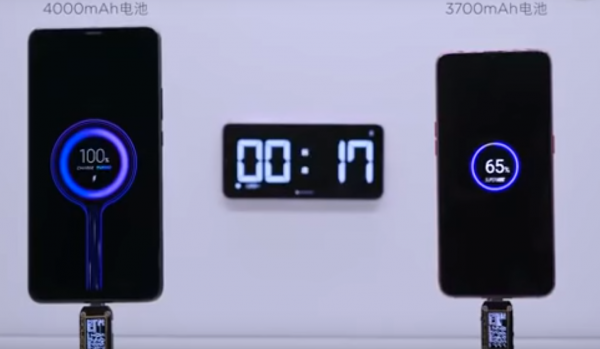 На видео показаны два мобильных устройства, а также таймер, который показывает, сколько времени прошло с момента начала зарядки. Одно из них — смартфон с аккумулятором на 4000 мА·ч, второе — смартфон Oppo с аккумулятором на 3700 мА·ч, подключенный к зарядке с технологией Super VOOC мощностью 50 Вт (эта технология позволяет заряжать аккумулятор до 75% за 30 минут, утверждает производитель).