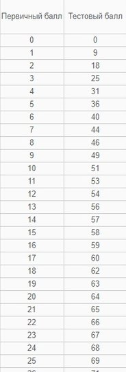 Девушка обратила внимание и еще на один момент. В таблице соответствия первичных баллов и тестовых указано: при первичном балле три тестовый составляет 25.