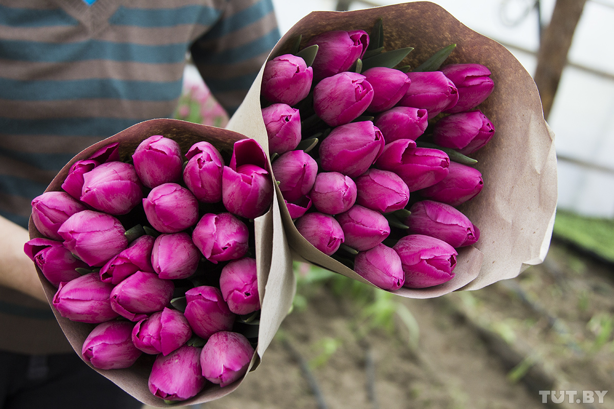 Тюльпаны — товар одного дня. Выращенные цветы фермеру нужно успеть продать до 8 марта. После реализовать продукцию практически нереально.