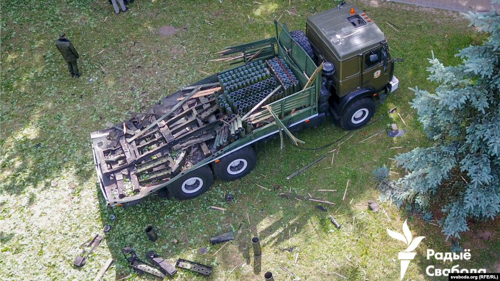 Одна из салютных установок после салюта, 4 июля 2019 года. Фото: «Радыё Свабода»