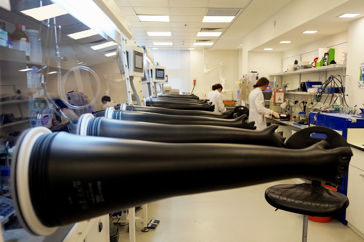 Штаб-квартира StoreDot — это не столько офисы, сколько лаборатории. Ученые работают над технологией быстрой зарядки батарей — всего за пять минут. Резиновые «руки» нужны для создания нейтральной среды, в которой проходят эксперименты: на пластины наносят реагенты и снимают показатели. Среди основателей — один из разработчиков флеш-памяти Семен Лицин, переехавший в Тель-Авив из Перми.